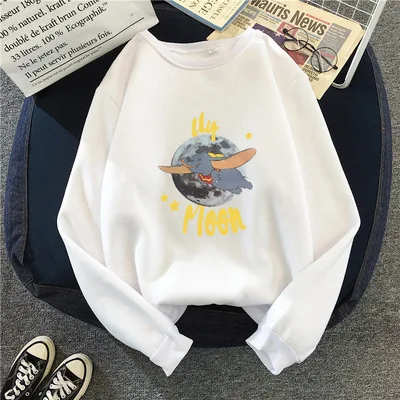 Images of Lady shirts Cartoon Animal Dumbo Elephant long sleeve T-shirt women men couple shirt 2020 autumn winter coat My Moon T-shirt :