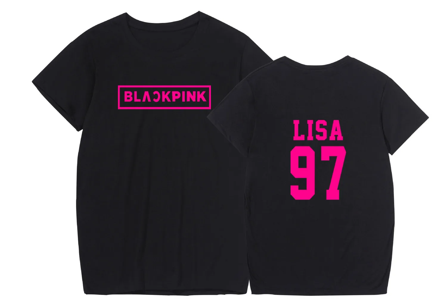 Images of KPOP T Shirt Blackpink Women Casual Short Sleeve Tee Shirt Femme 2020 New Style Lisa Jenie Jisoo Rose Yicool Printed Tshirt 4XL :