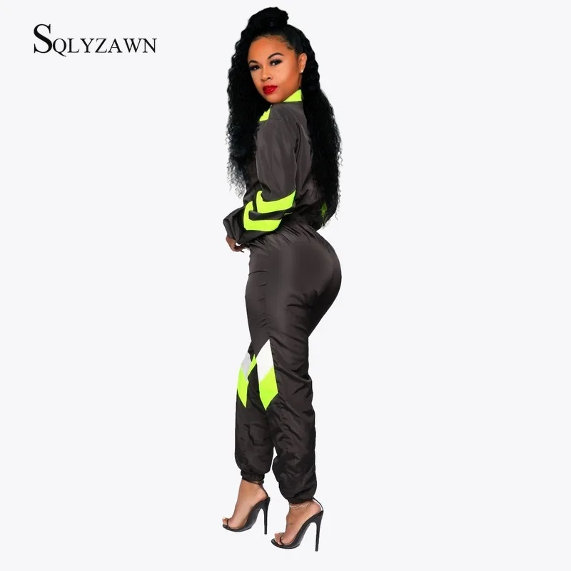Best Offer Women Zipper Color Block Long Sleeve Sportwear Jumpsuit Fall Winter Fashion Casual One Piece Overalls Casual Rompers Tracksuit