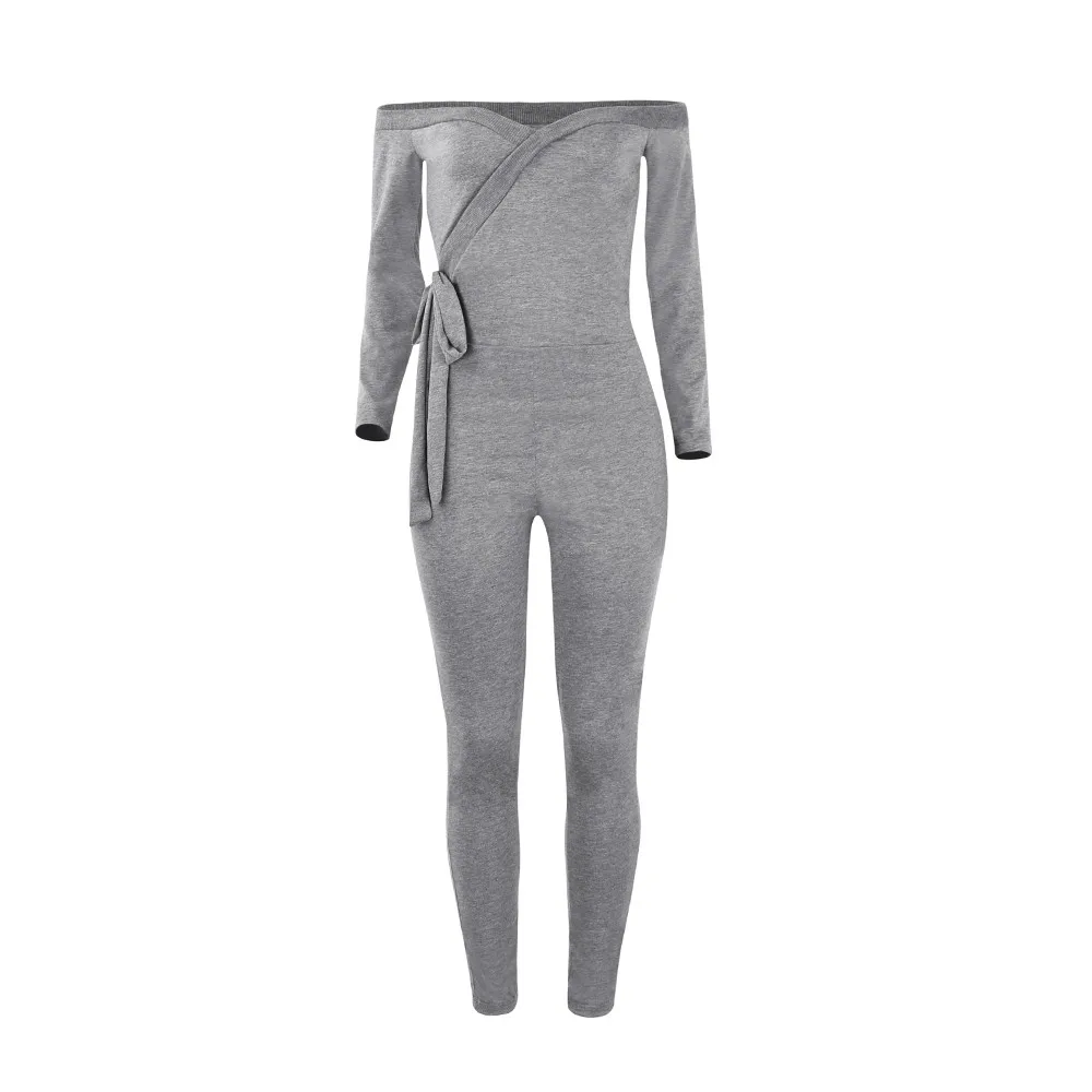 New Skinny Women Jumpsuit Elegant Solid Color Long Sleeve Deep V-neck Off Shoulder Sexy Slim Bodysuit overol mujer 2020 New Hot E