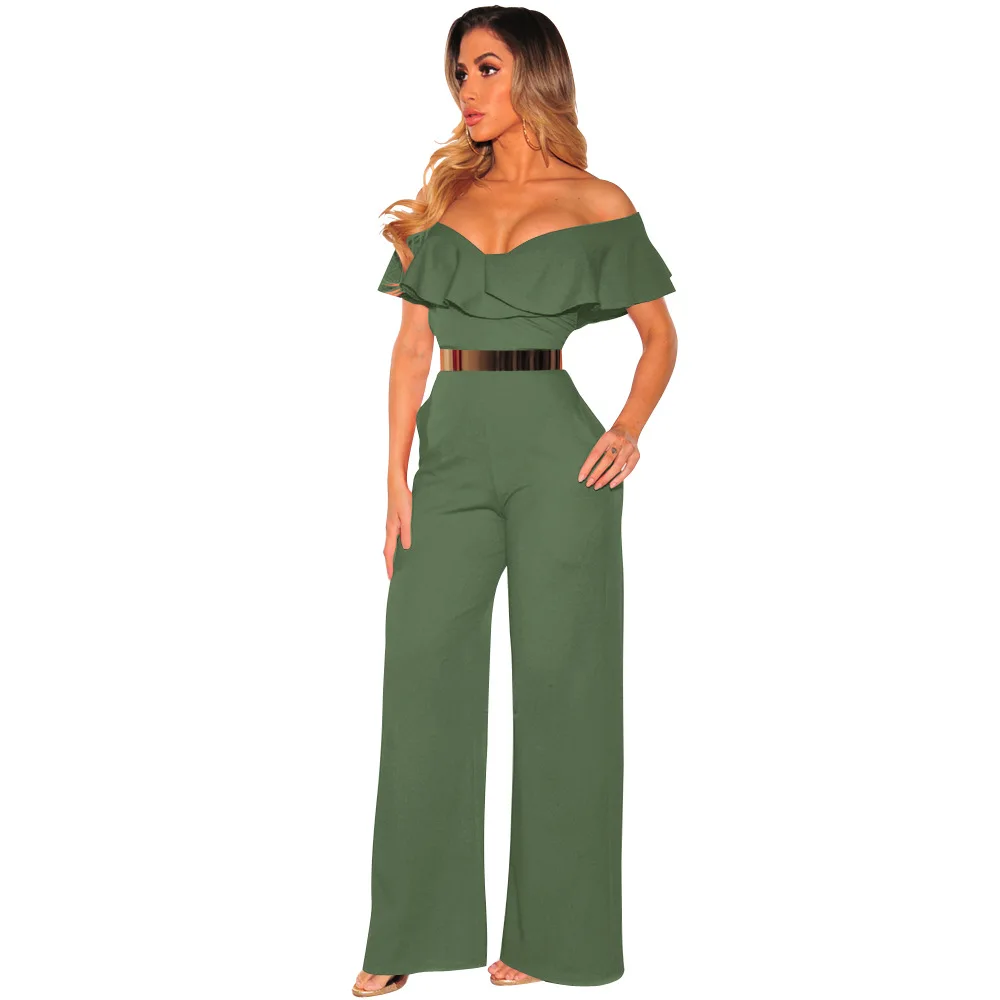 Images of 2020 Elegant Ruffle Summer Party Jumpsuit Women Sexy Off Shoulder Office Jumpsuit Overalls White Red Wide Leg Jumpsuits Rompers :