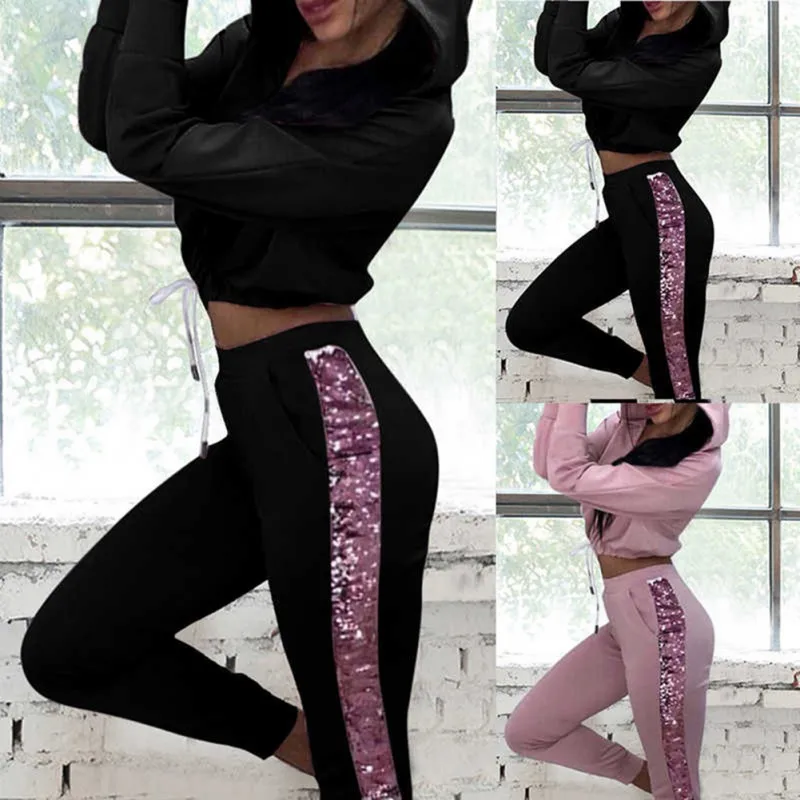 Promo Women Summer Loose Simple Long Sleeve Snake Print Stitching Hat Collar Tops Casual Slim Pants 2PC Suits