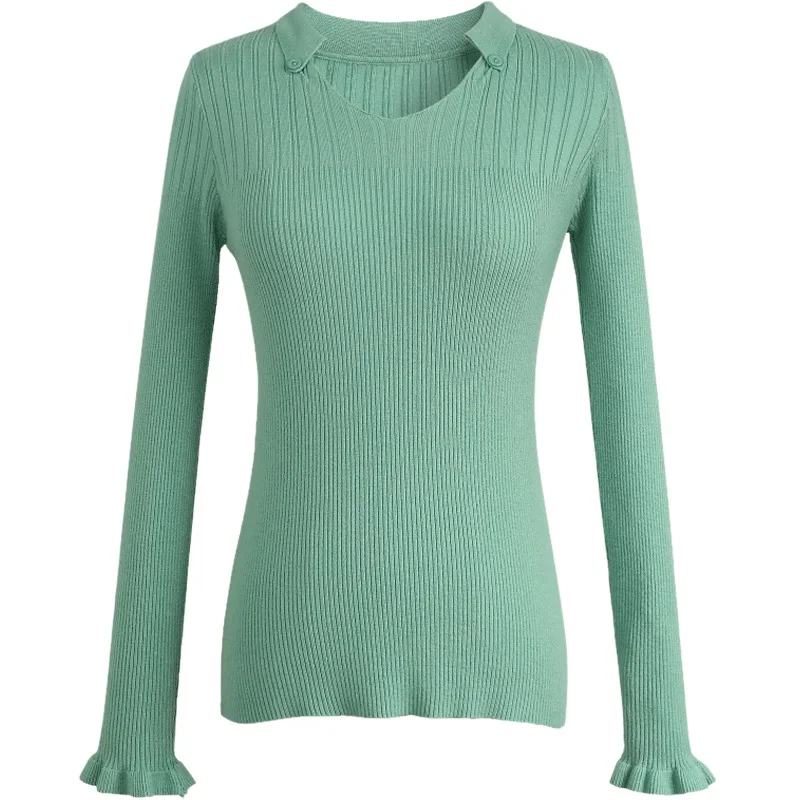 Best Offer Women V-Neck Autumn Flare sleeve Sweaters Ladies Korea Solid color Pullover 2019 Jumpers Female winter Long Sleeve Yellow Tops