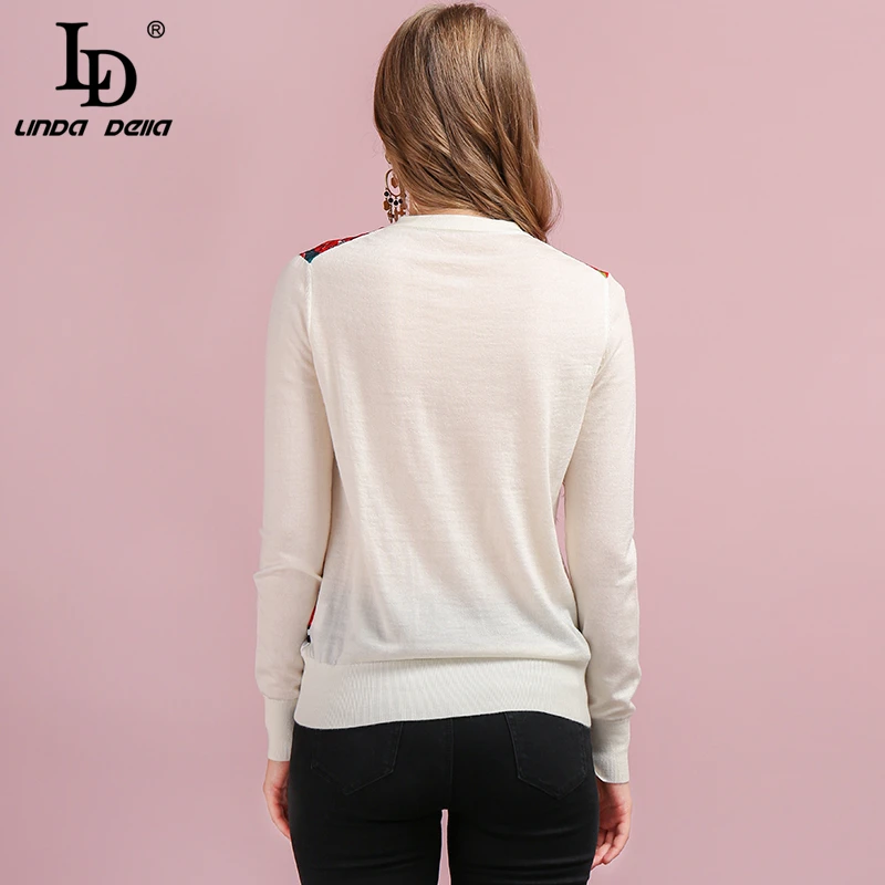 Buy LD LINDA DELLA Runway Fashion Autumn Vintage Knitting Sweaters Women's Long Sleeve Floral Printed Lady Stylish Wool Cardigans