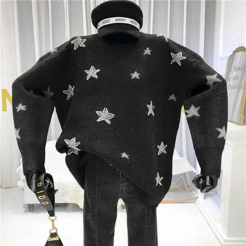 Images of Starts Women Sweater and Pullovers 2019 Autumn Winter O-Neck Casual Loose Women Winter Top Korean Fashion Female Cardigan Fall :