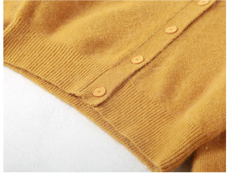 Images of 33% Wool+ 33% Mohair Womens Sweater Ladies Winter Knitted Single Breasted Solid O-Neck Women Tops Winter 2019 New yellow :