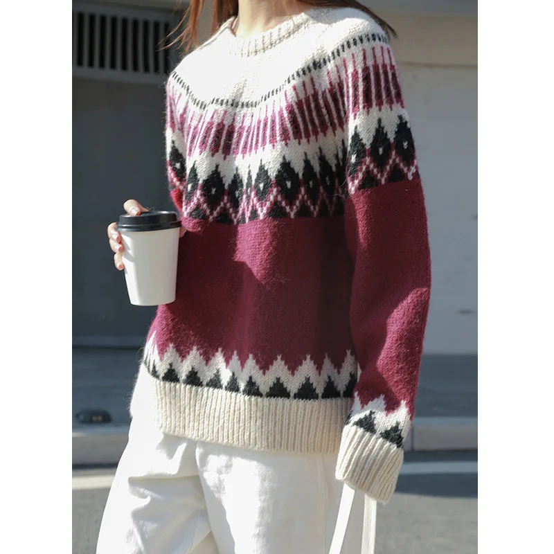 Sale Mohair Wool Blend England Style Geometric Designer Women Sweaters High Quality Warm Knitted Sweaters for Women