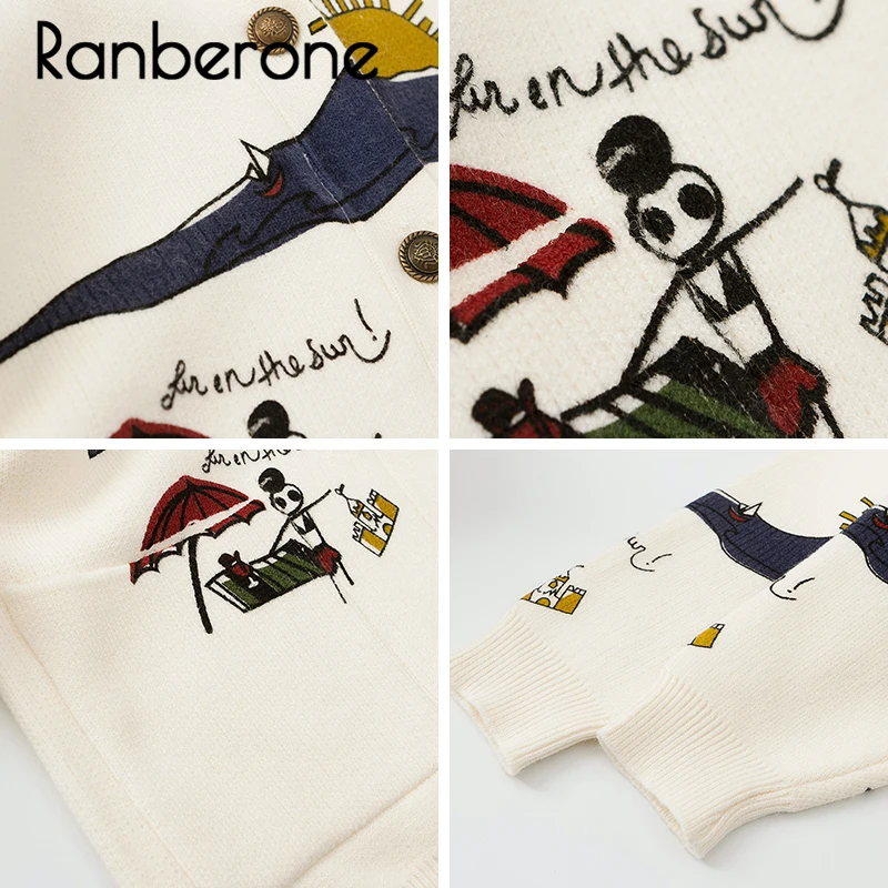 New Ranberone Women Sweater Cardigan Spring Woman Knitted Cardigan Sweaters Japanese Girl V-neck Jacquard Cardigan Sweater Winter