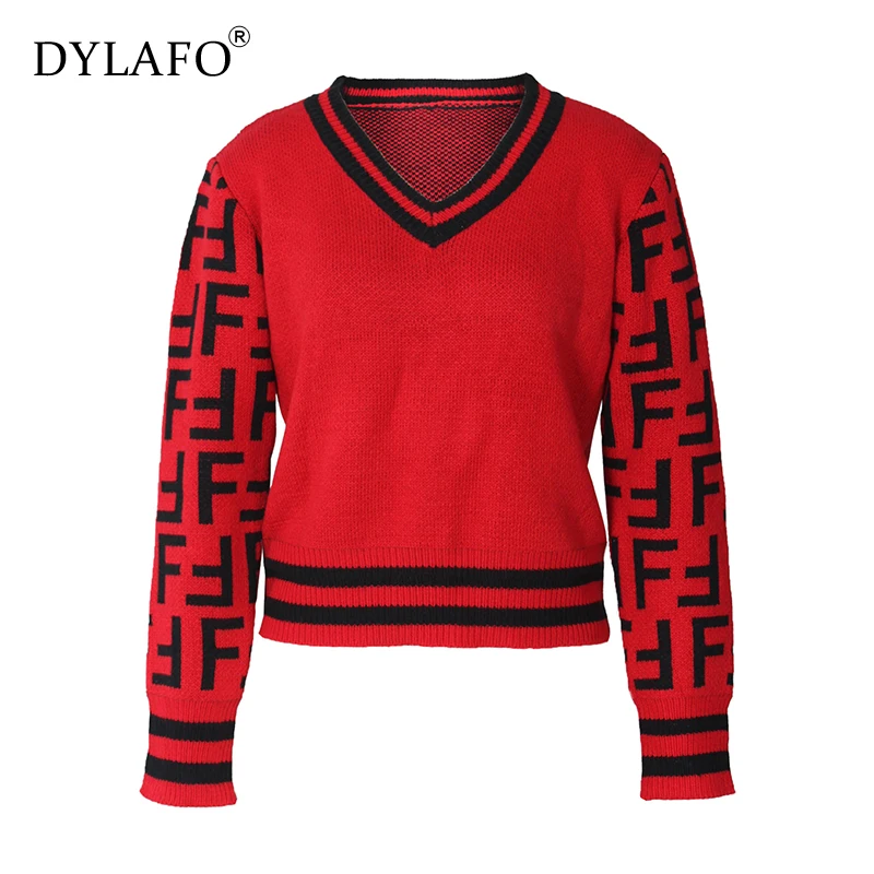 Images of Sexy Knitted Sweater V Neck Cashmere Sweater Female 2019 Autumn Winter Women Sweaters And Pullovers Long Sleeve Sweater Jumper :